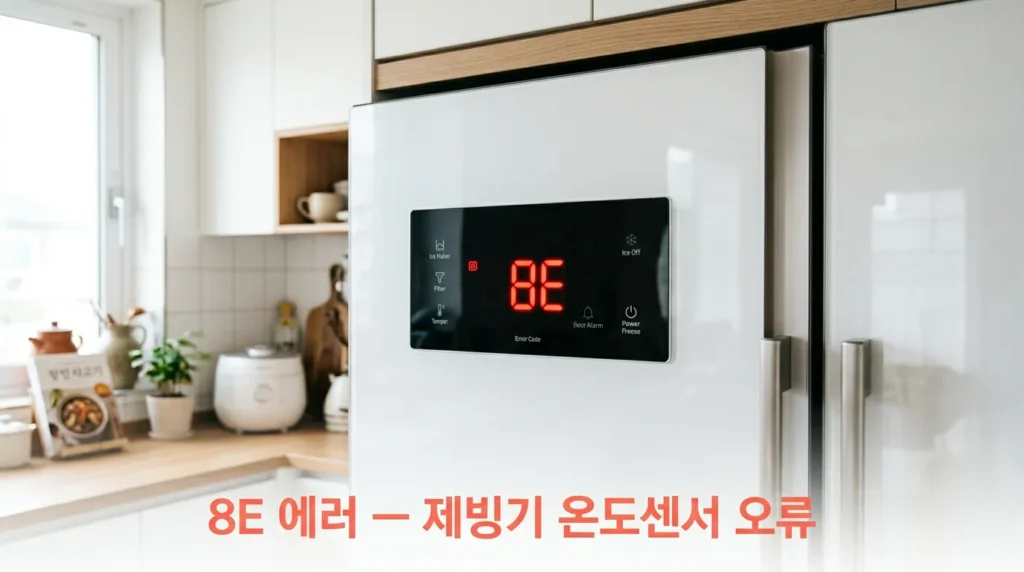 ✅ 8E 에러는 제빙기 아이스몰드 온도센서 오류로, 리셋만으로 해결되는 경우가 많아요.